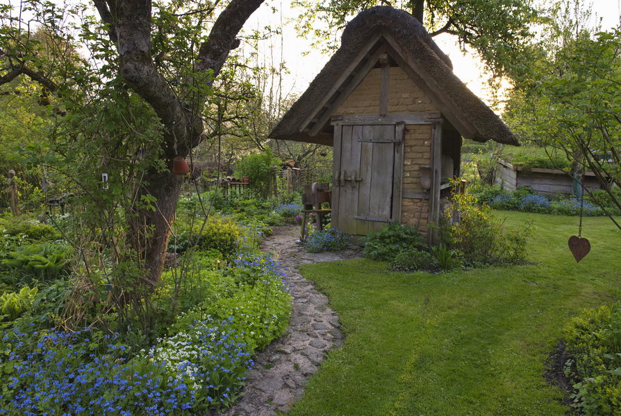 - Bauerngarten, Gartenhaus, Myosotis, Reet, Schuppen, Weg, Garten Chalupka