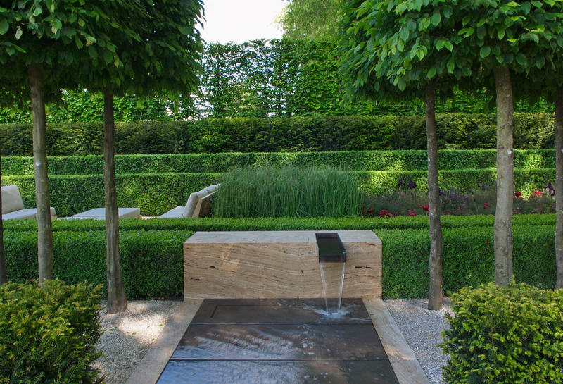 - Kugelbäume, modern, Naturstein, Quellstein, Stein, Wasser, Wasserbecken, Chelsea Flower Show