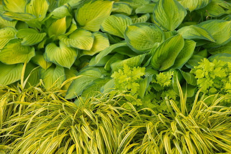 Hakonechloa, Hosta, gelblaubig