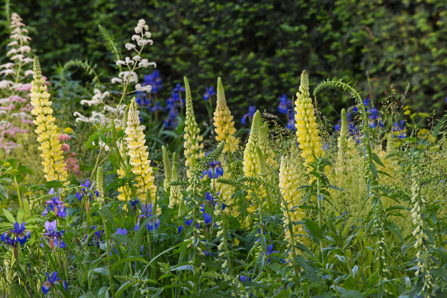 - Iris, lupine, Lupinus polyphyllus, Taxus baccata