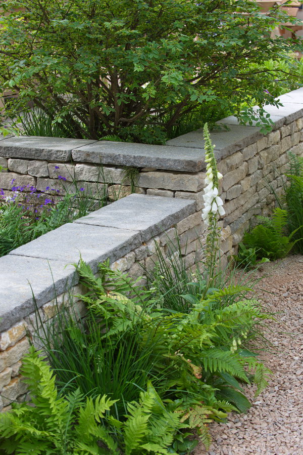 - Chelsea Flower Show, Digitalis, Farn, Kies, Trockenmauer