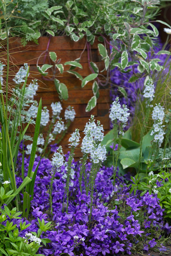 - Campanula poscharskyana, Chelsea Flower Show, Galium odoratum, Hosta, Veronica gentianoides
