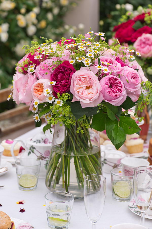 - gedeckter Tisch, Rosen, Strauß, Vase