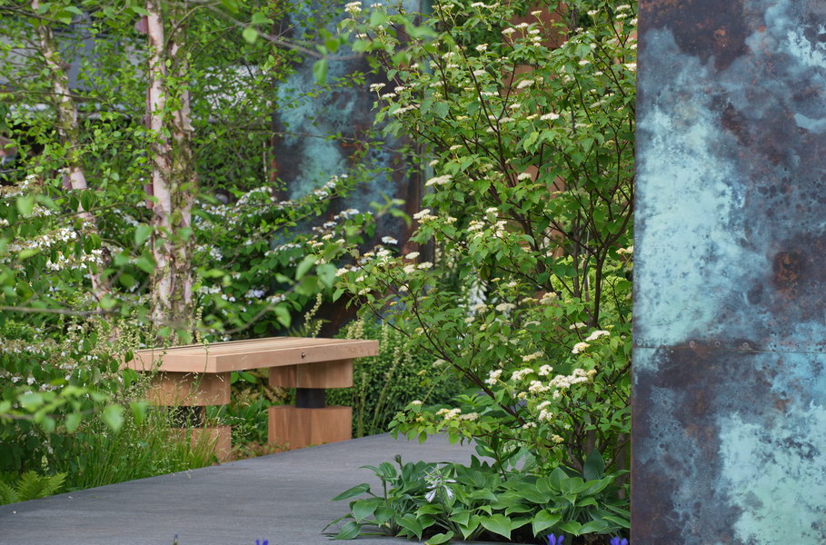- Bank, Chelsea Flower Show, Hosta, Schneeball, Viburnum plicatum