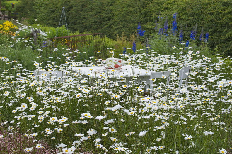 - Gefülltblühende Pechnelke, Leucanthemum vulgare, Lychnis viscaria 'Plena', Wiesen-Margerite, Naturgarten