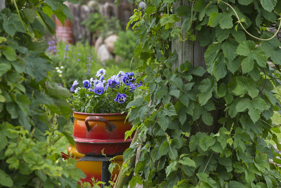 - alt, Hopfen, Humulus lupulus, Topf, Viola