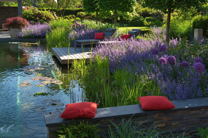 - Allium, Nepeta, Schwimmteich, Sitzmauer, Garten Christian Bahl