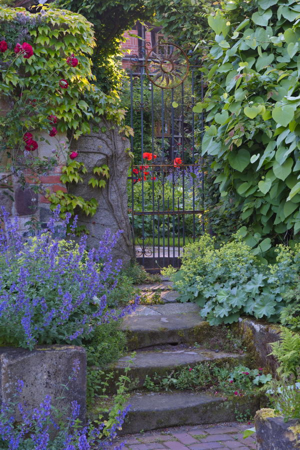 - Bogen, Garten Scheele, Naturstein, Nepeta, Rose, Stufen, Tor