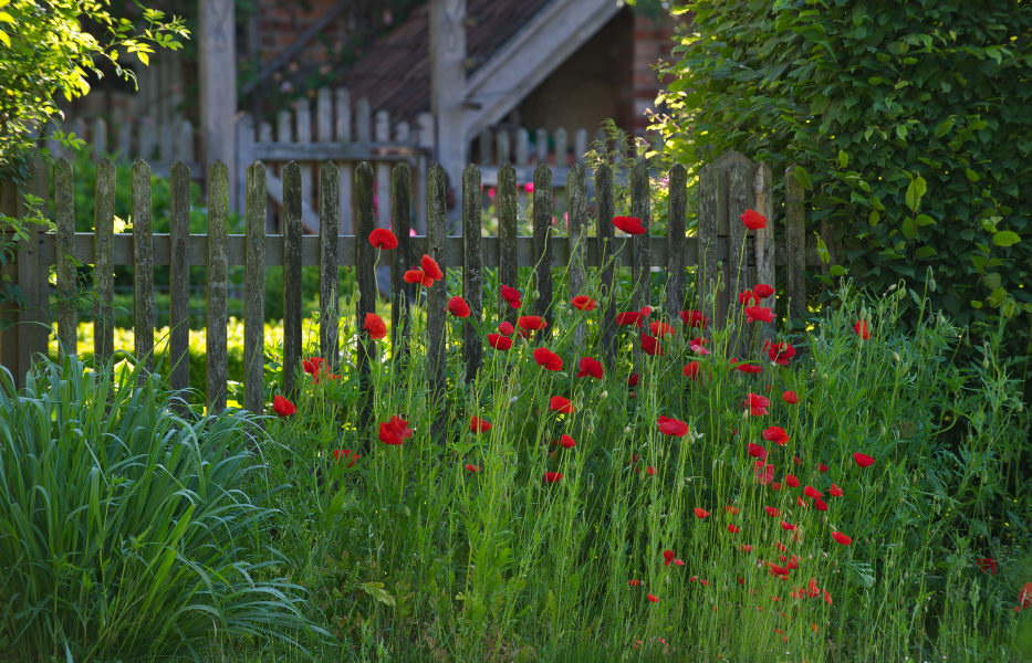 - Bauerngarten, Garten Scheele, Mohn, Zaun