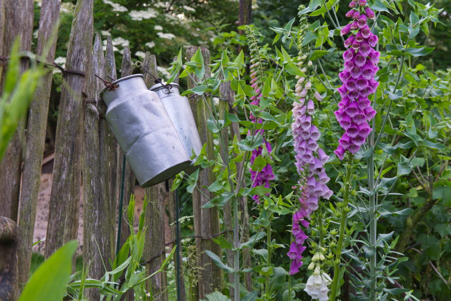 - alt, Digitalis, Garten Chalupka, Milchkanne