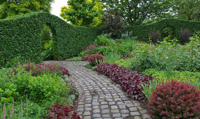 - Bogen, Buchenhecke, Hecke, Heuchera, Weg, Einfassung, Garten Dingemans-Loos