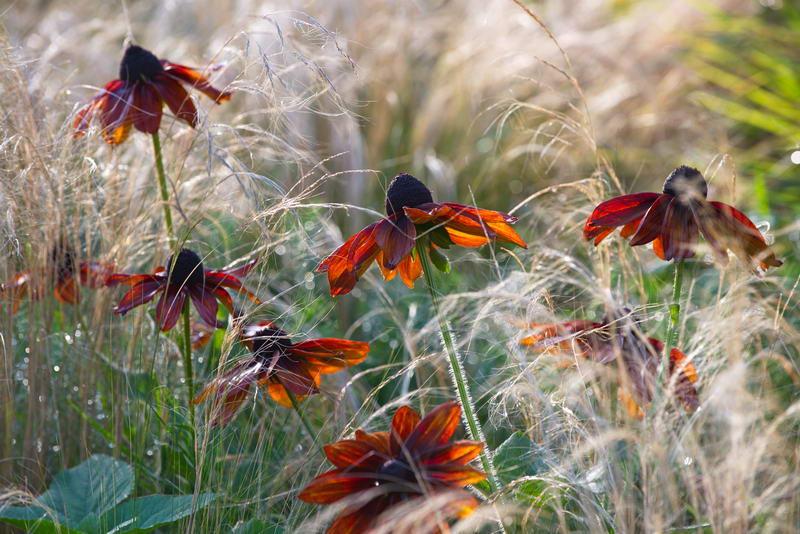 - Rudbeckia hirta 'Cappuccino', Stipa