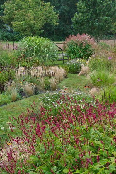 - Bistorta amplexicaule, Gräser, Jacobstuin, Liatris, Rudbeckia, Stipa tenuissima