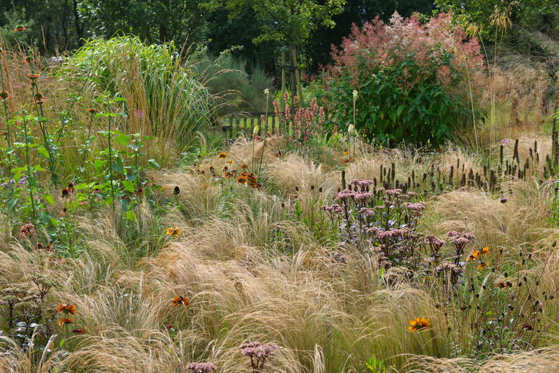 - Gräser, Jacobstuin, Rudbeckia, Sedum 'Matrona', Stipa tenuissima