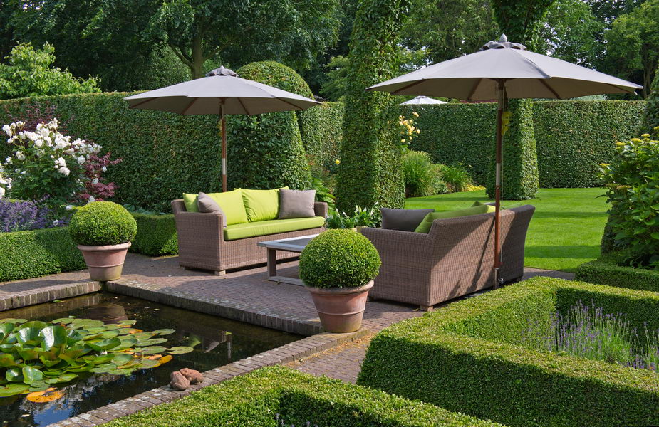 - Terrasse, Wasserbecken, formal, Garten: Les Deesses Vertes, Evergem, Belgien