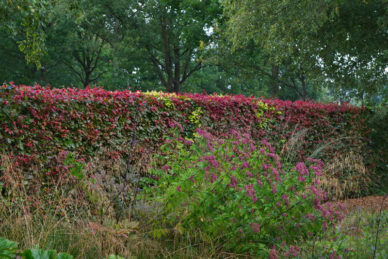 Eupatorium, Hecke, Fagus sylvatica 'Purpurea'