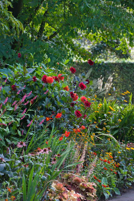 Bistorta amplexicaule, Dahlia, Heuchera