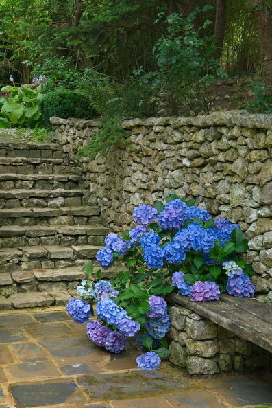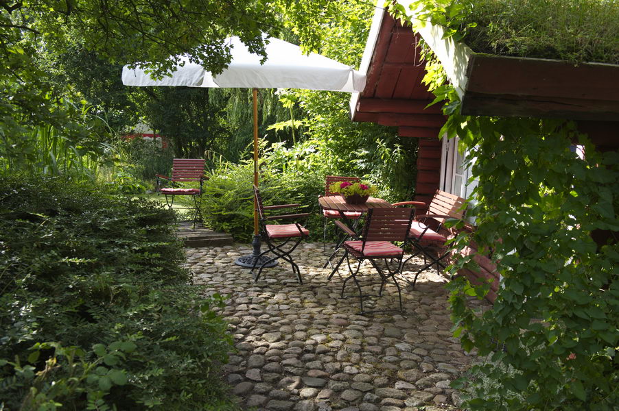 - Blockhaus, Naturstein, Pflaster, Sitzplatz, Schatten, Garten Christine Eichner