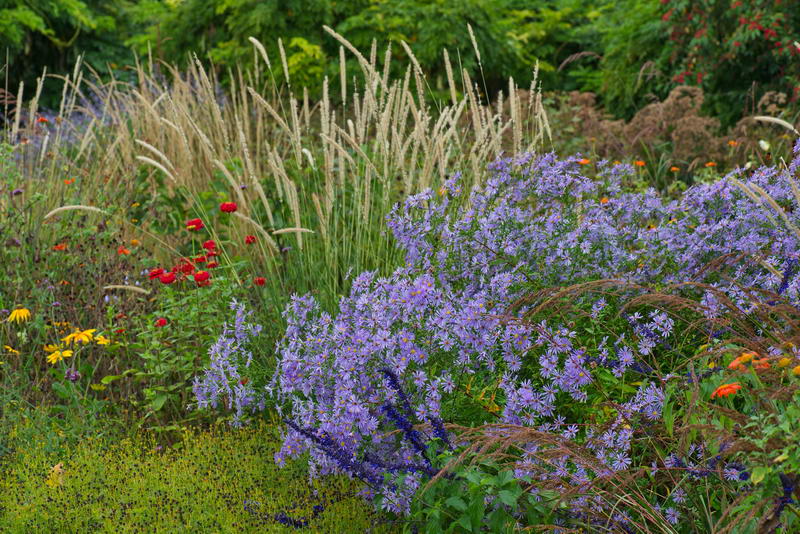 - Aster laevis 'Blauschleier', Hermannshof, Pennisetum macrourum 'White Lancer', Sorghastrum nutans 'Indian Steel'