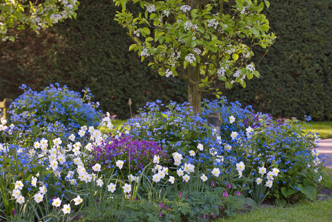 Brunnera macrophylla, Dicentra, Frühlings-Platterbse, Lathyrus vernus, Narzissen