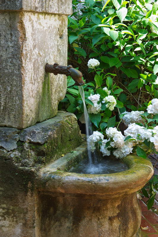 - Brunnen, Hortensie, Mauer, Schatten, Agapanthe