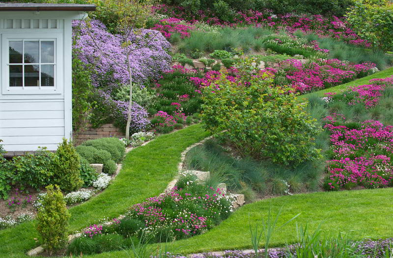 - Armeria maritima, Garten Regine Heusinger, Grasnelke, Hanggarten, Rasen, Rasenweg