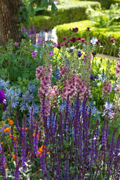 - Acer campestre, Camassia quamash, Chelsea Flower Show, Geum, Iris 'Sable Night' Lupinus, Verbascum