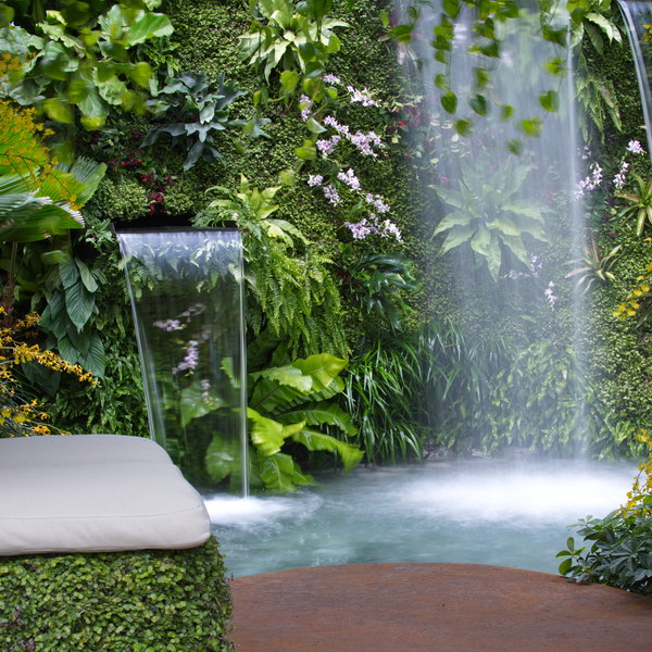 - Bank, Chelsea Flower Show, Rost, Stahl, Wasserbecken, Wasserfall, Chelsea Flower Show