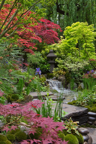 - Ahorn, Bach, Chelsea Flower Show, Iris, Japan, Japangarten, Moos, Steinlaterne, Wasserfall, Chelsea Flower Show