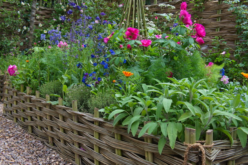 - Beeteinfassung, Chelsea Flower Show, Kies, Weide, Chelsea Flower Show