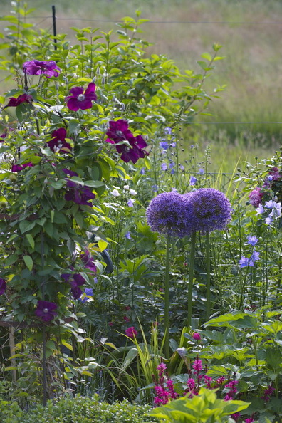 Centranthus ruber, Kiesbbeet, Salvia 'Caradonna', Allium, Alte Gutsgärtnerei Sierhagen
