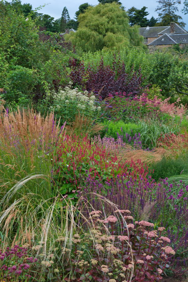 - Cambo Garden, Eupatorium, Monarda, Persicaria amplexicaule 'High Society', Persicaria bistorta 'Superba', Präriebeet, Präriegarten, Sedum