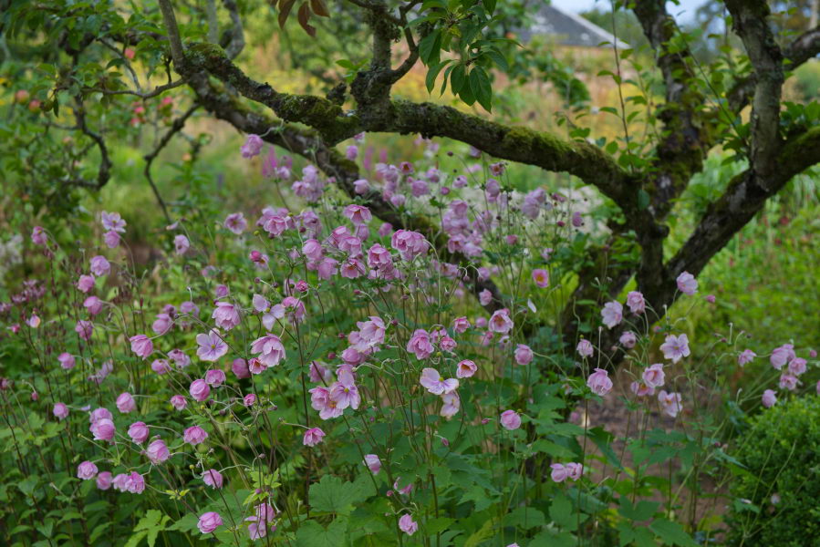- Anemone hupehensis, Apfel 'James Grieve', Cambo Garden, Herbstanemone