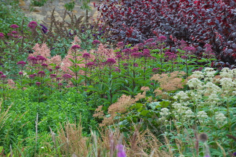 - Cambo Garden, Eupatorium, Lythrum, Persicaria bistorta 'Superba', Präriebeet, Präriegarten