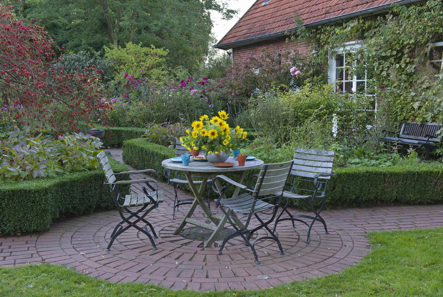 - Bauerngarten, Hagebutten, Sitzplatz, Sonnenblumen