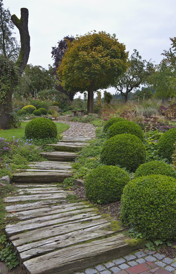 - Acer platanoides 'Globosum', Buchs, Kugelbaum, Weg