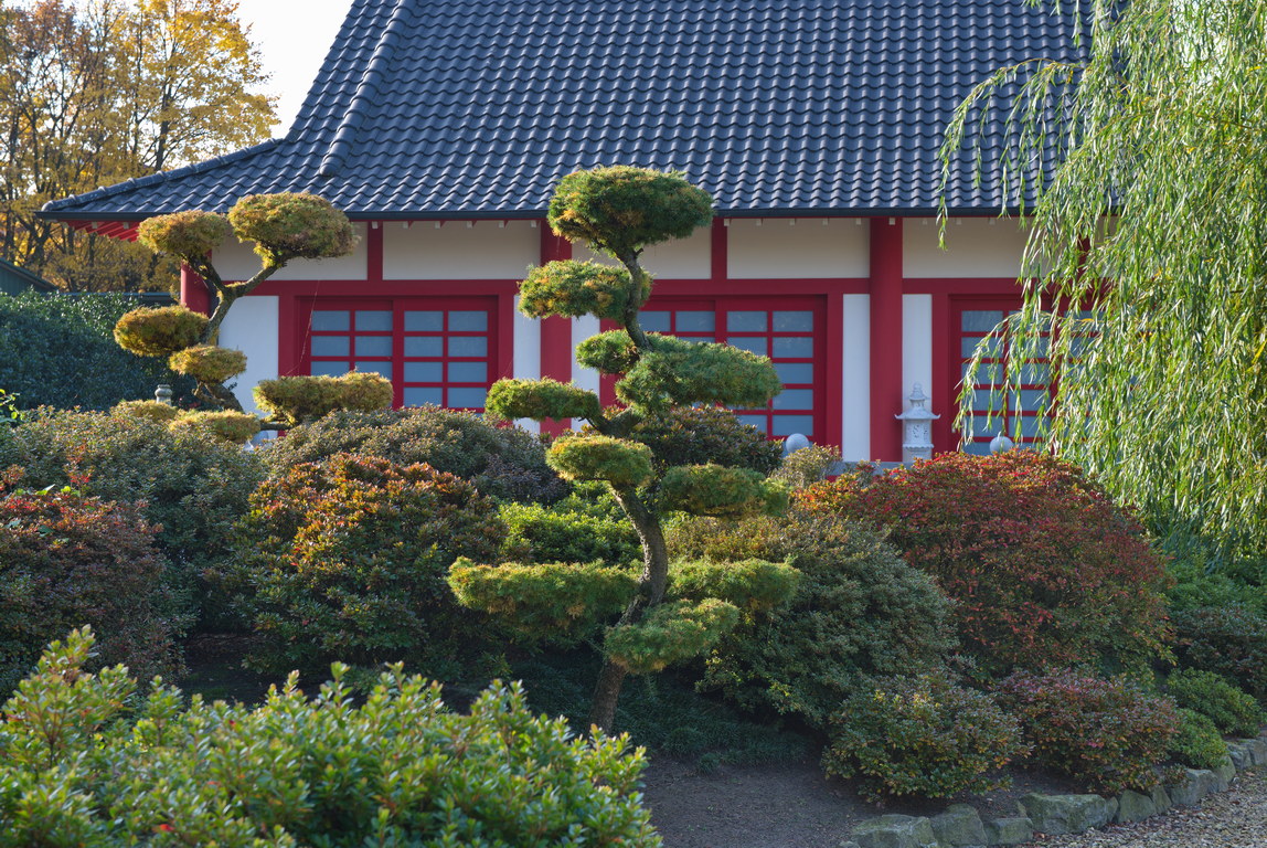 - Japangarten, Niwaki, Teehaus, Wolkenschnitt, asia, Herbstfärbung