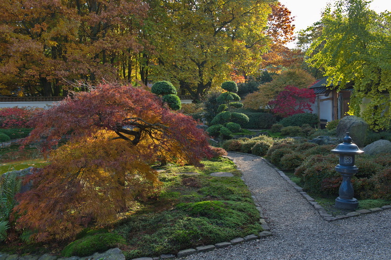 - Acer, Japangarten, Laterne, Steinlaterne, Weg, asia, Herbstfärbung