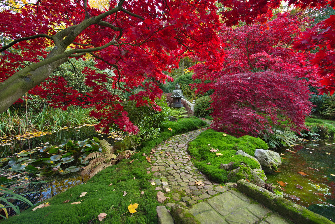 Acer palmatum, Moos, Herbstfärbung