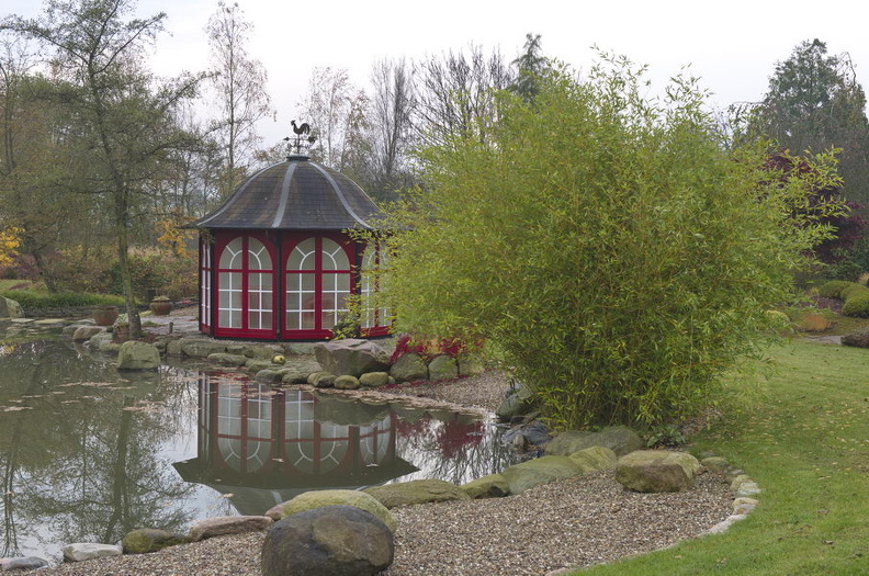 - Garten Ehmann-Green, Hakonechloa macra 'Aureola', Japan-Goldbandgras, Pinus, Teich
