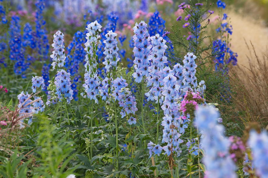 - Delphinium "Morgentau", "Finsteraarhorn", "Ballkleid", "Lanzenträger", "Augenweide"