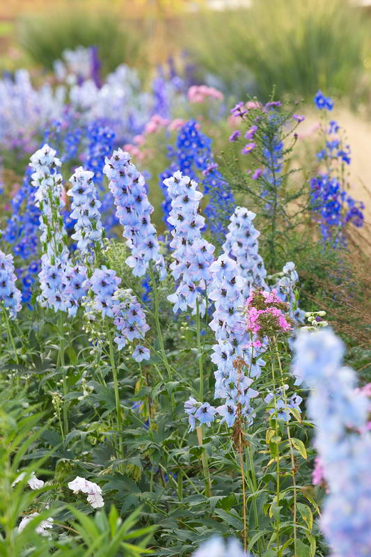 - Delphinium "Morgentau", "Finsteraarhorn", "Ballkleid", "Lanzenträger", "Augenweide"