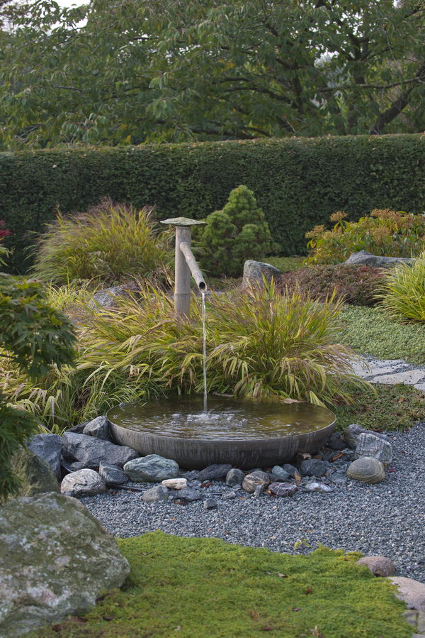 - asia, Garten Ehmann-Green, Hakonechloa macra 'Aureola', Japan-Goldbandgras, Tsukubai, Wasserschale