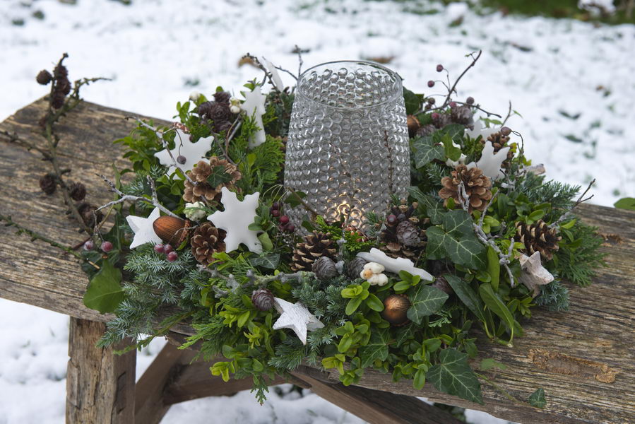 Advent, Adventskranz, DIY, Glas, Schnee, Teelicht