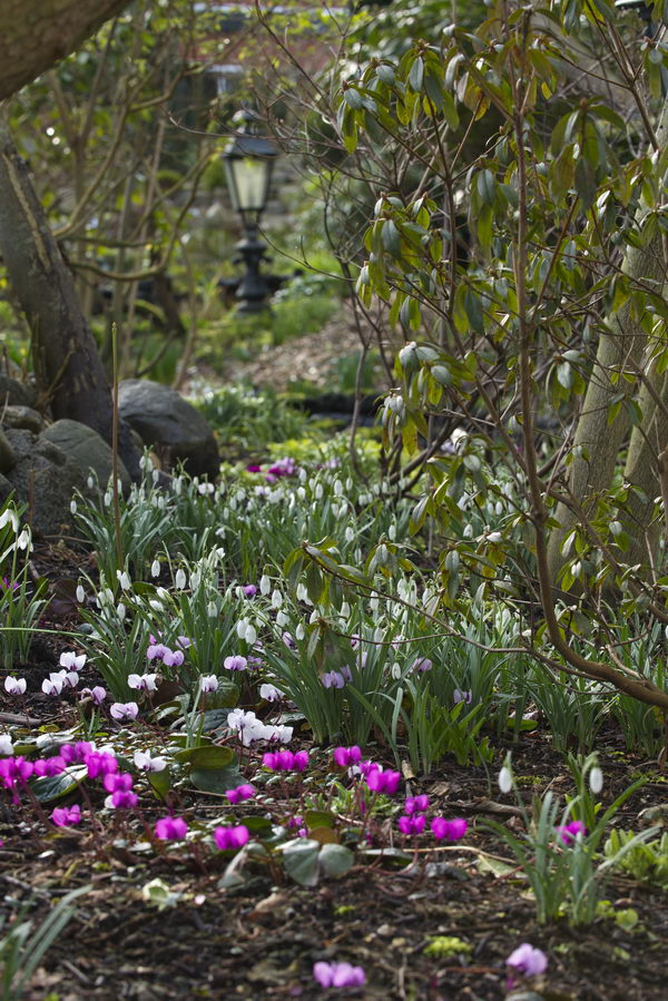 - City Channel Garden, Cyclamen coum, Galanthus nivalis, Lida Lourens