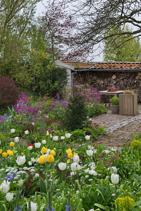 - Lunaria, Tulpe 'Black Jack', Tulpe 'Conqueror', Tulpe 'Design Impression', Tulpe 'Purissima', Tulpe 'Queen of the Night', Tulpe 'Spring Green', Tulpe 'Vanilla Cream', Tulpe 'White Dream', Garten Maldegem