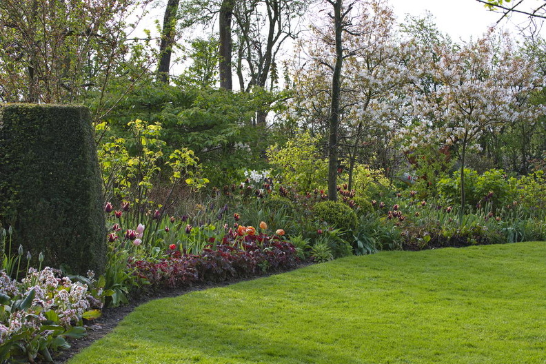 - Hecke, Rasen, Tulpe 'Gavota', Tulpe 'Orange Favourite', Tulpe 'Purple Rain', Tulpe 'Ballerina', Tulpe 'Besteller', Tulpe 'Hermitage', Tuin 't Hofje Familie Cijsouw