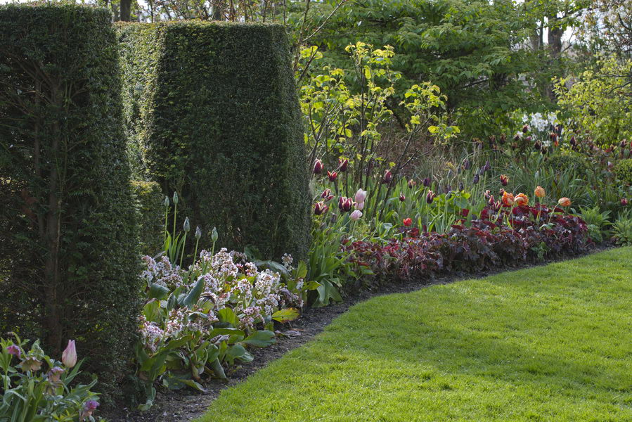 - Hecke, Rasen, Tulpe 'Gavota', Tulpe 'Orange Favourite', Tulpe 'Purple Rain', Tulpe 'Ballerina', Tulpe 'Besteller', Tulpe 'Hermitage', Tuin 't Hofje Familie Cijsouw