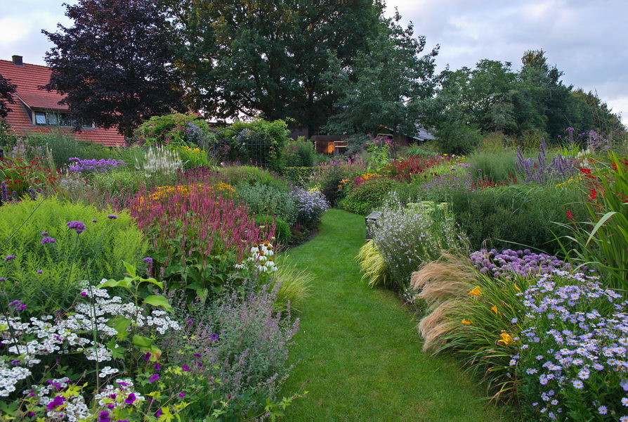 - Agastache 'Black Adder', Gräser, Kalimeris incisa 'Blue Star', Montbretia, Persicaria amplexicaulis 'Jo and Guido's Form', Persicaria amplexicaulis 'Orange Field', Persicaria orientalis 'Kiss-me-over-the-garden-gate', Phlox 'Hesperis', Plantzoentje - Garten Anja Broekhuis, Verbena bonariensis
