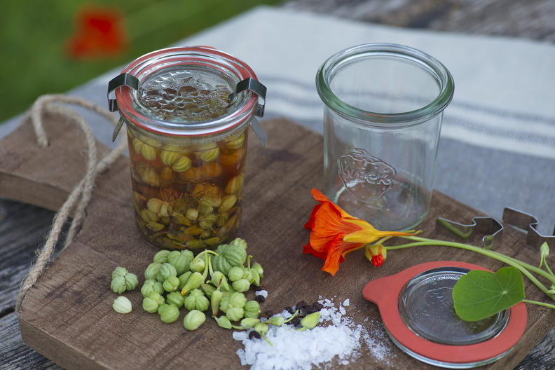 - DIY, einlegen, Falsche Kapern, Kapuzinerkresse, Tropaeolum